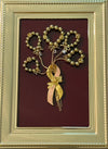 Vintage pink ribbon pin holds golden balloons
