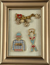 Vintage snow pin with sweater & skis